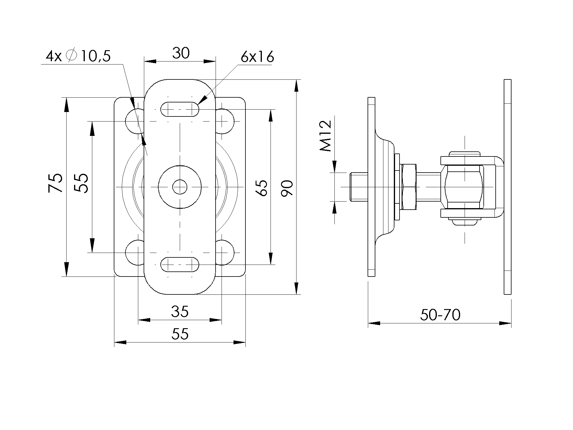 Lowest price in the last 30 days:without VAT708 FtUnit price /UnavailableIn stock (130 units)Adjustable hinge with anchoring flange M12, 55x75 D8/53-M12-K