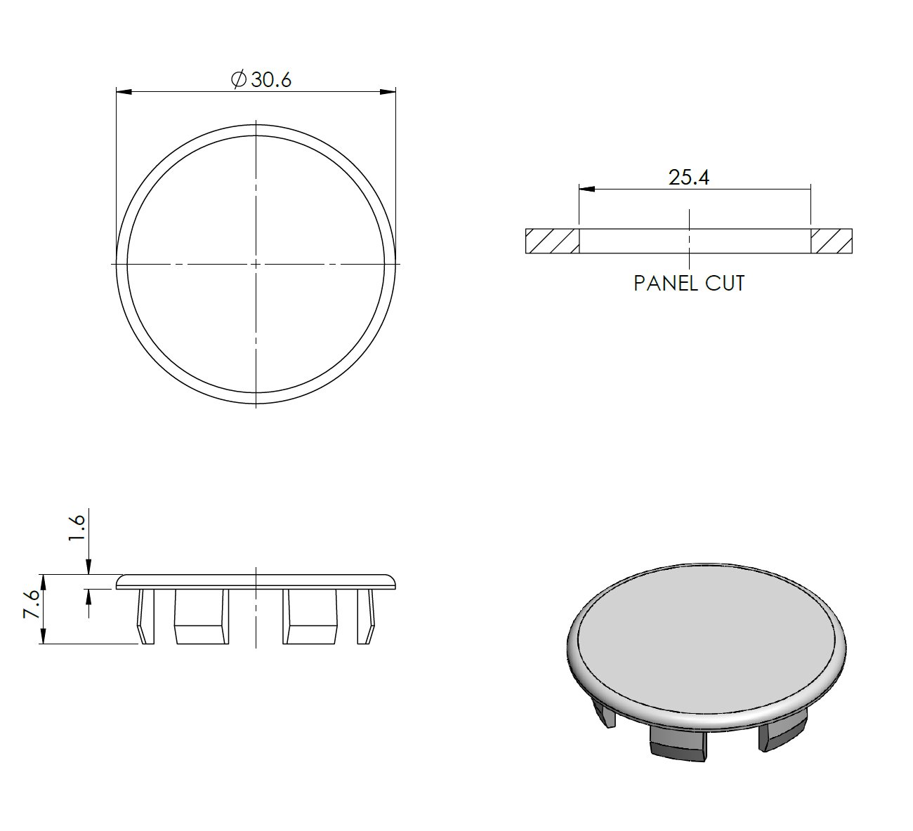 End cap for AL profile, PVC, D25mm A24/0005-007