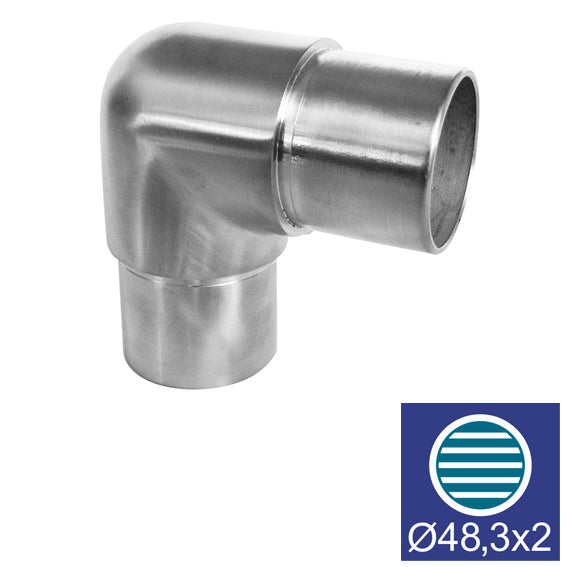 Direct flush angle steel, 90°, for tube D48,3mm, AISI 304, cut K320, for glueing.