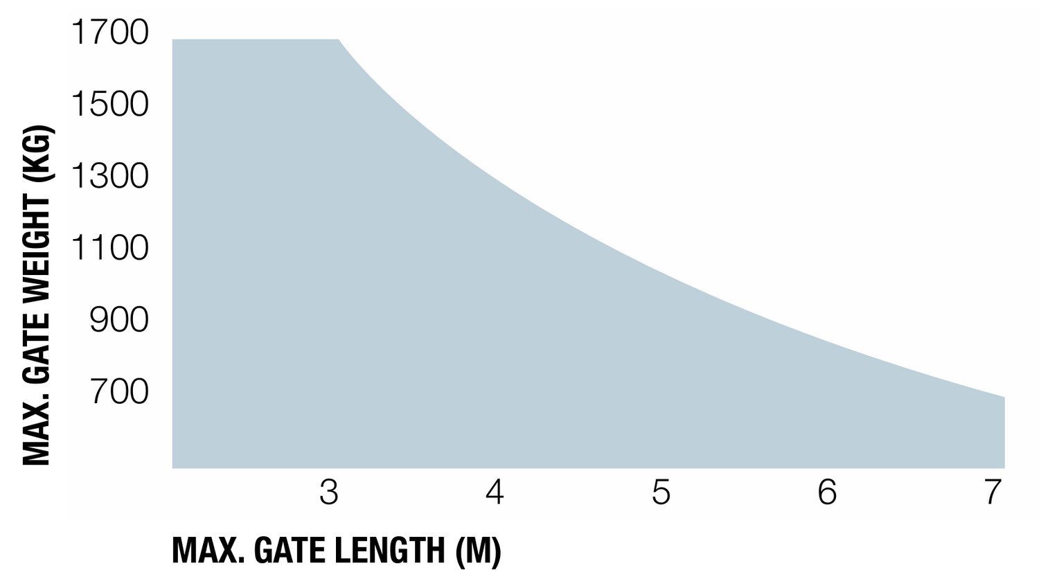 Odporúčaná hmotnosť krídla brány pre správnu funkčnosť pohonu.