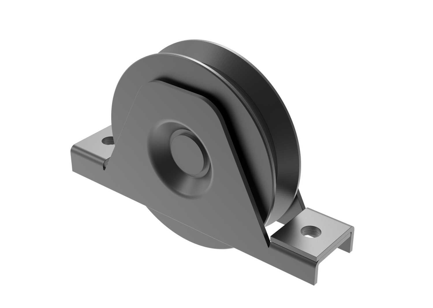 Trolley capstan with holder for roller sliding gates, average 80mm, single bearing, designed for screwing to the door frame (flush mounting), for rails type "U", D16, hot galvanized.