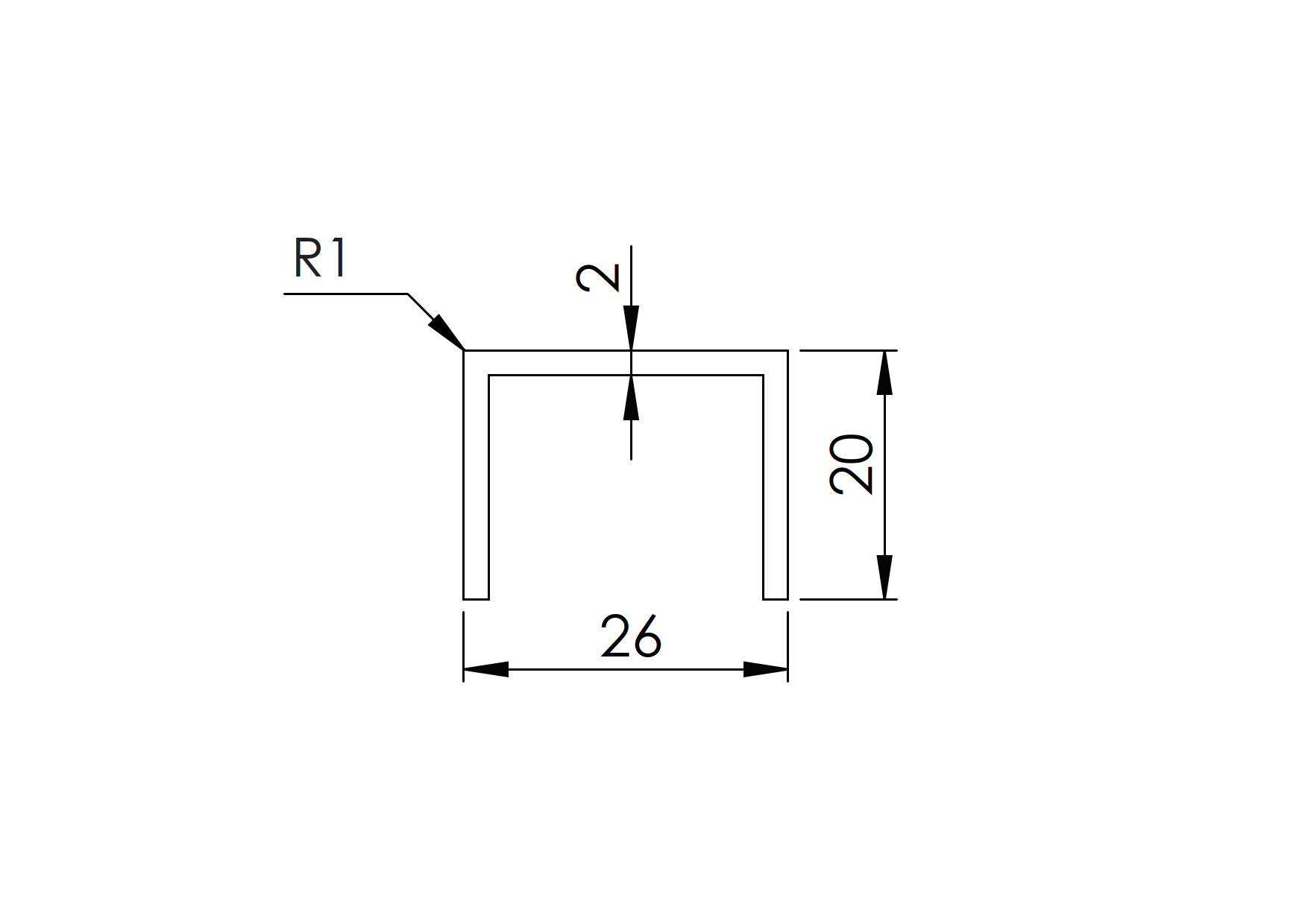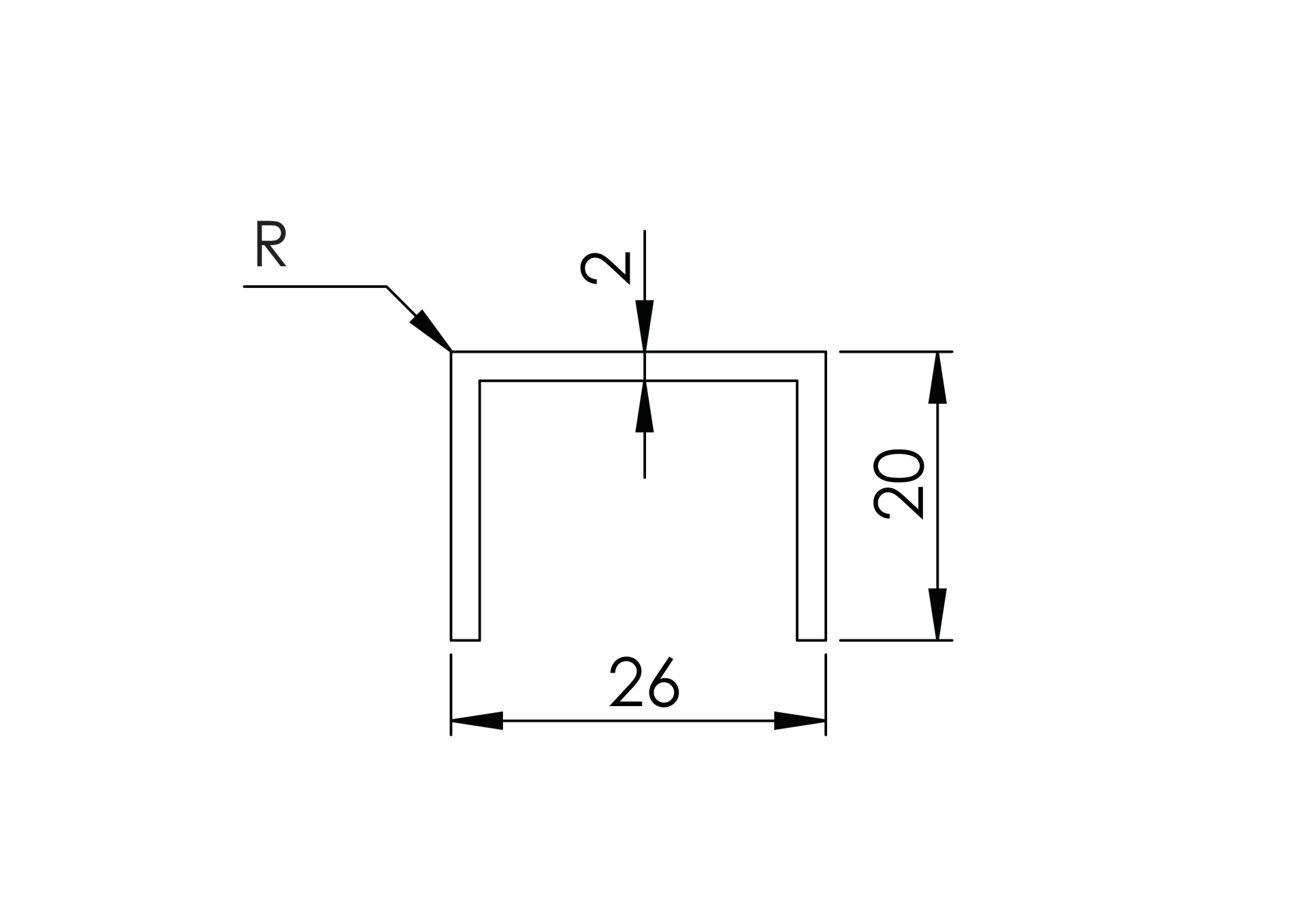 Material: Aluminium, Surface finish: Satin-ELOX, Glass t: 20,00-21,52, L: 3000, Anchoring: Glass, D: 26, H: 20, R: 1, t: 2, LED: No