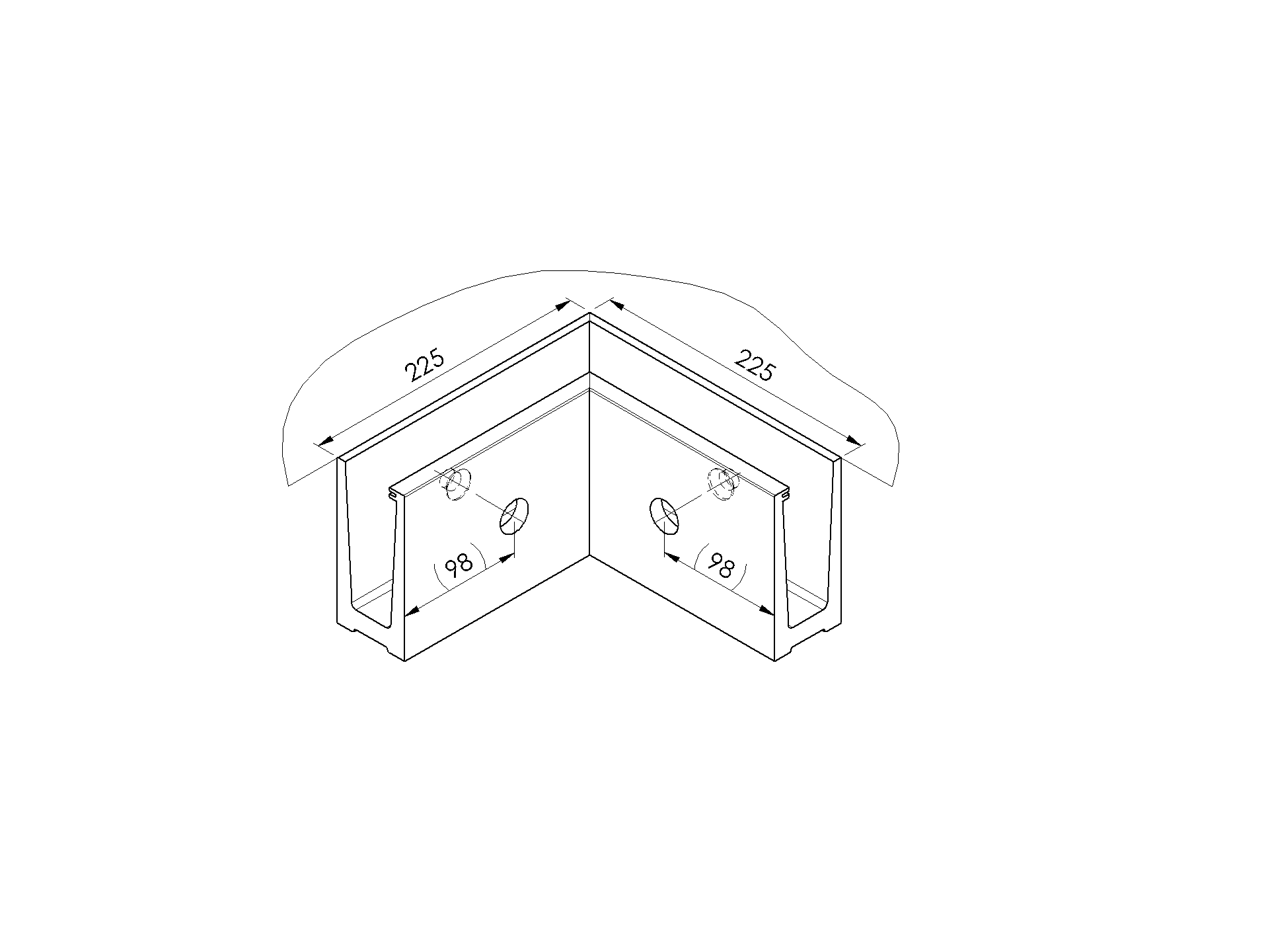 AL. profile, top mount 90° IN corner AL/ELOX/Sati AL/0009-S-E-90-IN