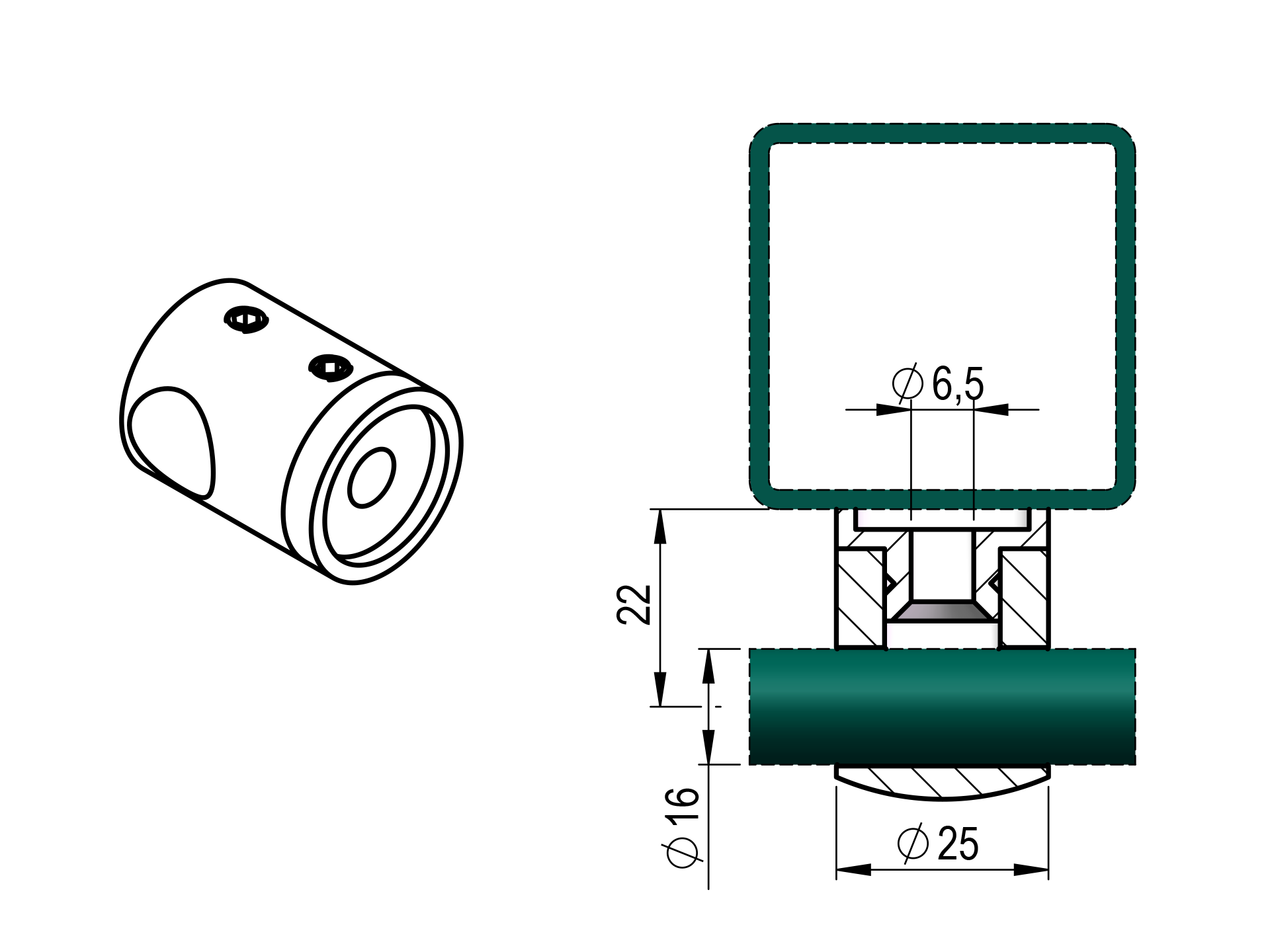 Felső rögzítésű oszlop pálcás korláthoz A-VR110-5D12