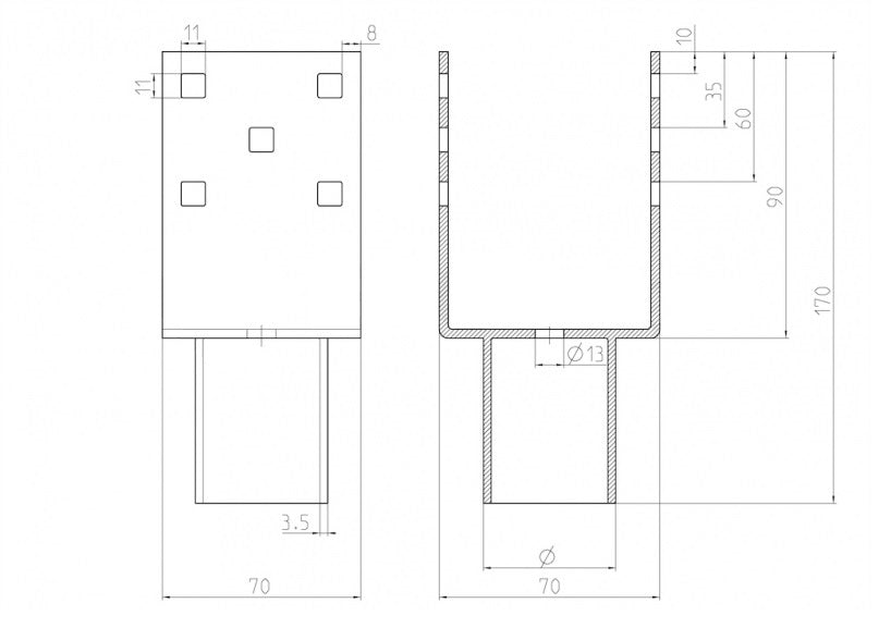 Földcsavar toldat Zn "U" 70x70x90x60mm YFB01ZN070X070X090X60
