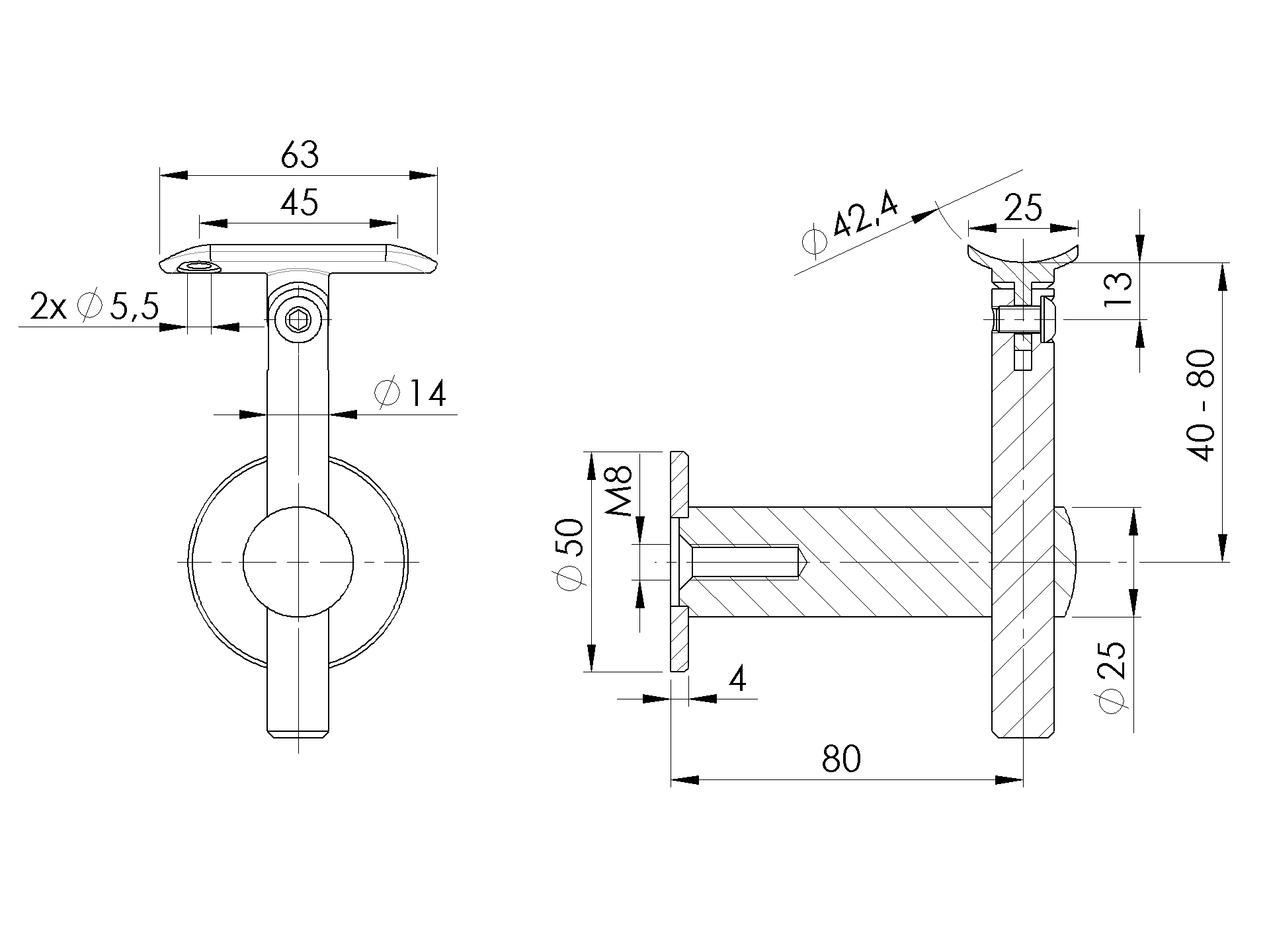 AnyagInox AISI 304Felület kezelésSzálcsiszoltKapaszkodóD42,4Kötelező tartozékokKészlet elérhetősége