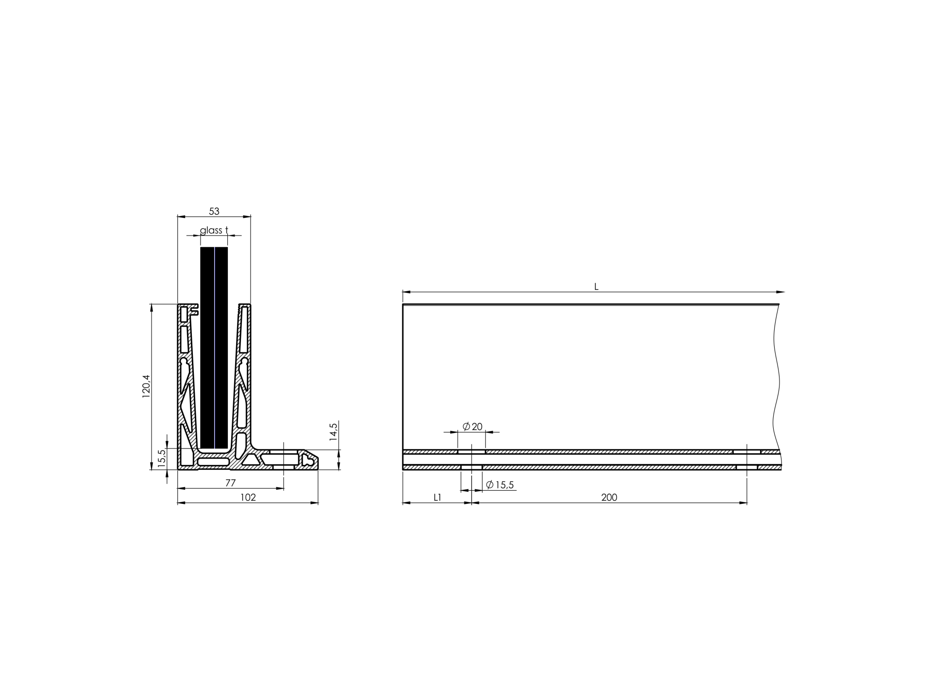 Oldalperemes alumínium profil üvegkorláthoz AL/0006-5000-S-E