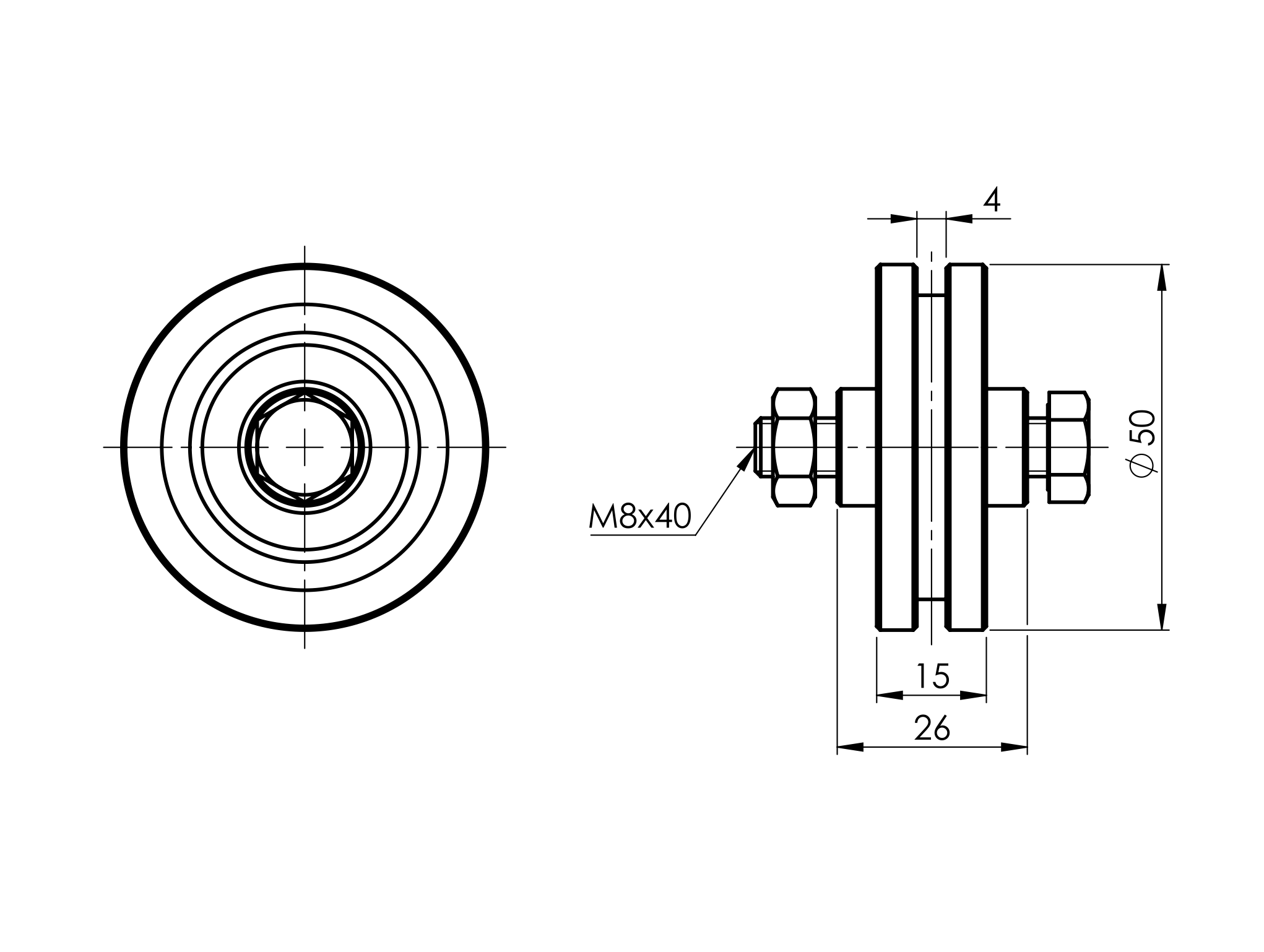 Tolókapu görgő-H, Zn, D80mm H/06H-80C