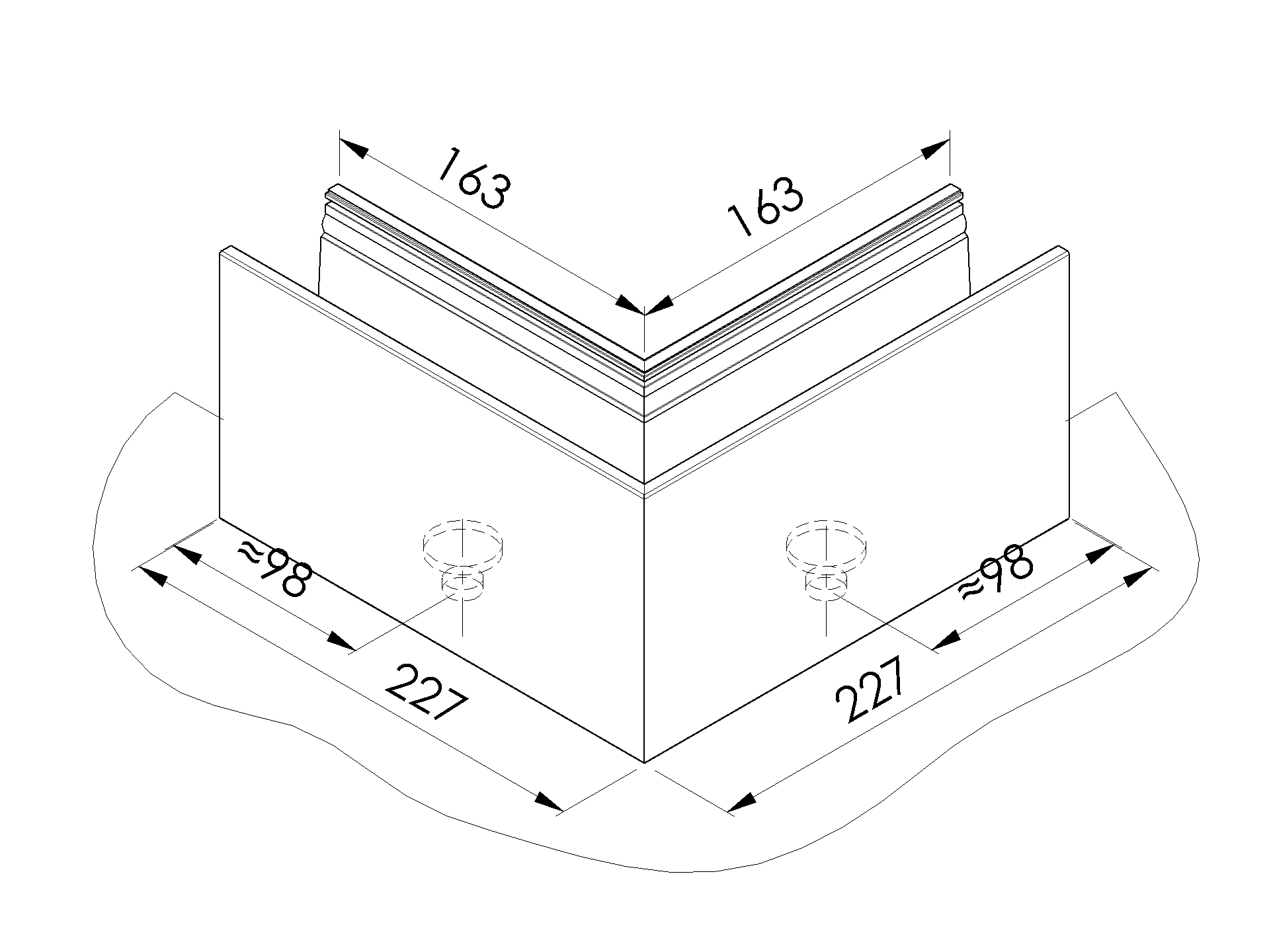 Al. rögzítő profil ELOX 130/60mm üveghez T=16,76–21,52mm, rögzítés felülről a padlóba, állítható üvegdőlés. Szállítva L2500mm hosszúságban (13db d14mm furattal a rögzítéshez). Tömítés nélkül szállítva. Felületkezelés ELOX - csiszolt.