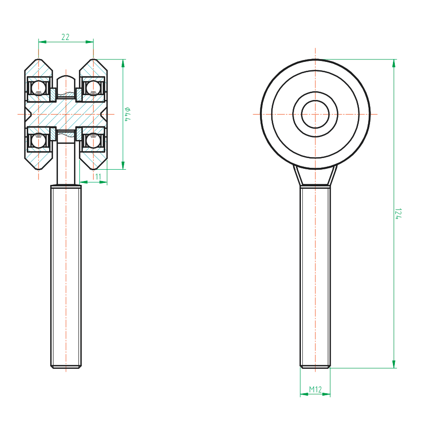 Görgő függőkapuhoz, 42x54 mm sínhez.
