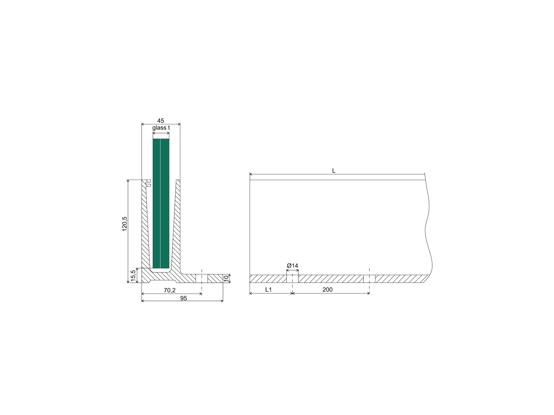 Oldalperemes alumínium profil üvegkorláthoz AL/0006-1250-S-E