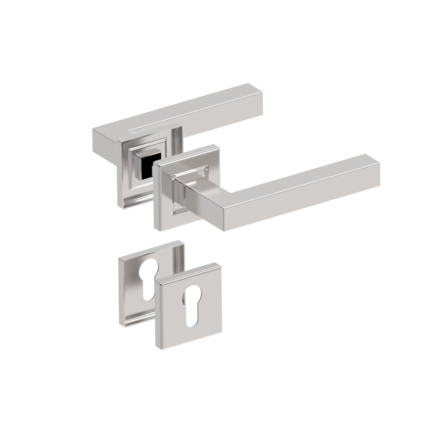Egy pár rozsdamentes kilincs, egy pár zárbetét takaróval. Anyagminőség AISI 304, szálcsiszolt K320