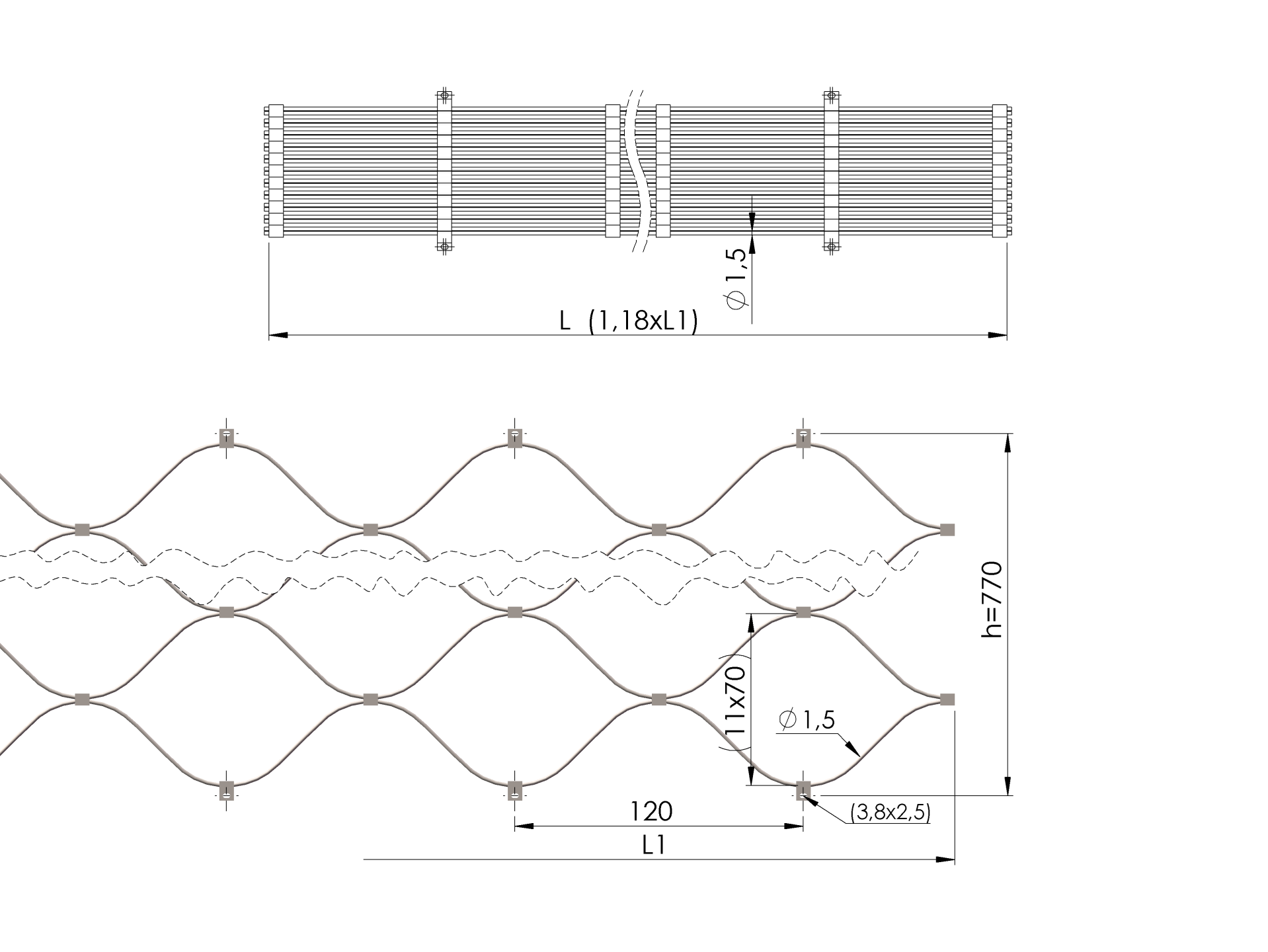 Saválló sodronyháló korlátra. A14/LV-70x120x1,5-100